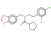 | EnglishSynonyms: | CYCLOPENTANECARBOXAMIDE, N-(1,3-BENZODIOXOL-5-YLMETHYL)-N-[2-(2,4-DICHLOROPHENYL)ETHYL]- ; N-(1,3-BENZODIOXOL-5-YLMETHYL)-N-[2-(2,4-DICHLOROPHENYL)ETHYL]-CYCLOPENTANECARBOXAMIDE |
